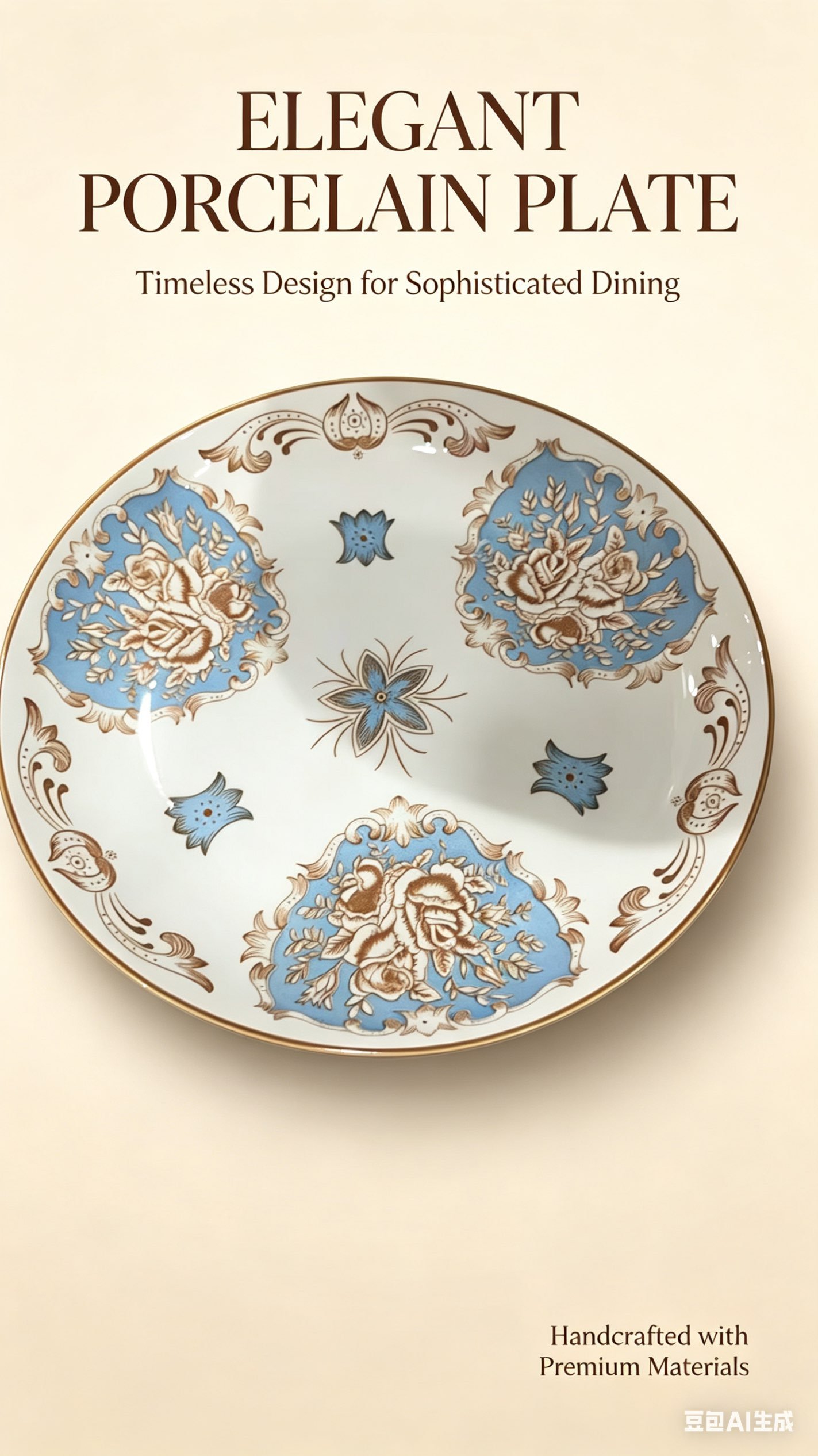Elegant court-style design with blue glaze, gold embossed rose patterns and delicate scrollwork, bringing a romantic and luxurious vibe.