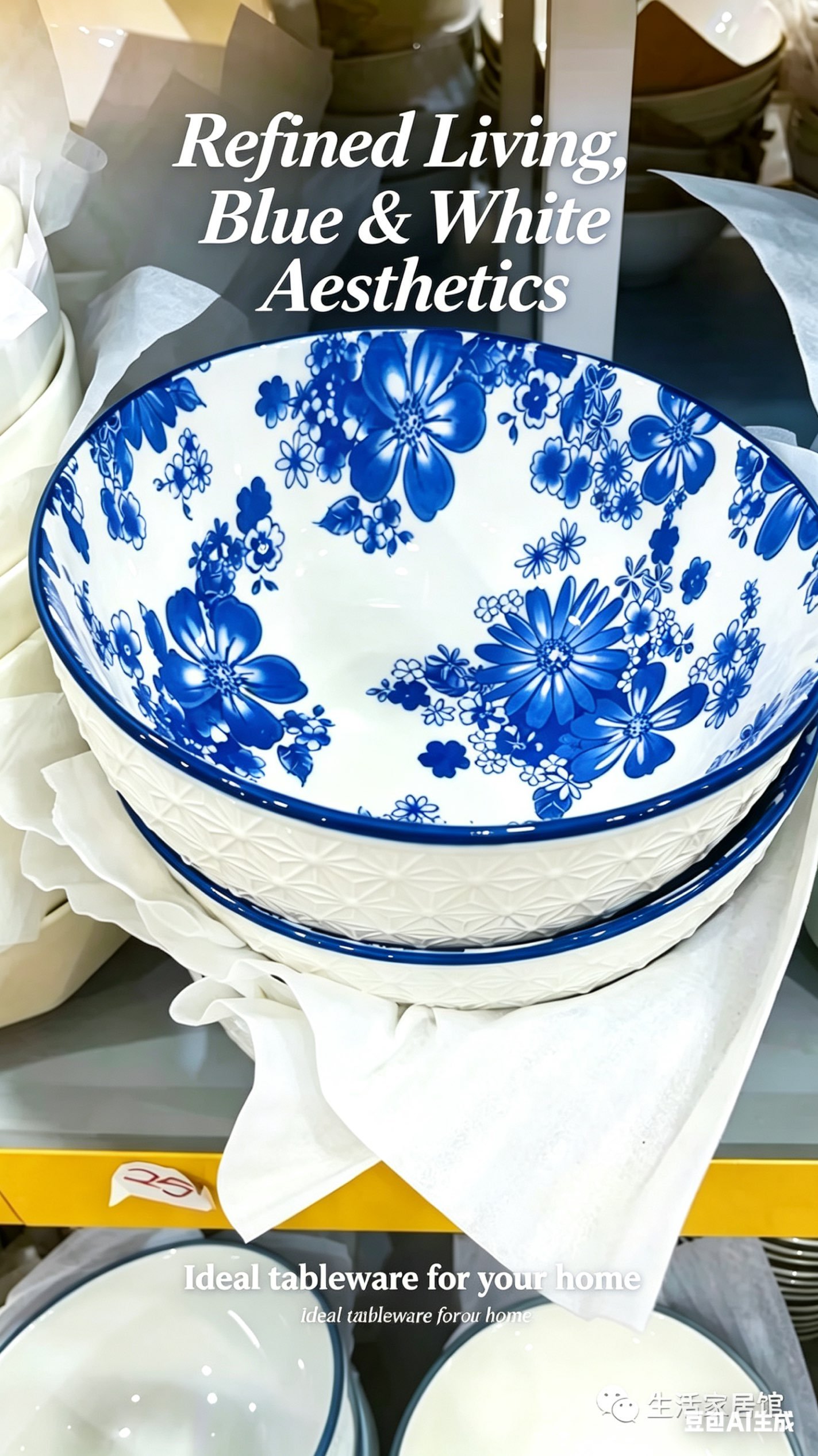 Classic blue & white floral ceramic bowl with embossed texture on the exterior. Vintage-inspired floral print inside adds timeless charm. Large capacity is perfect for noodles, soups, or family-style meals. Durable high-fired ceramic resists chipping, combining beauty and practicality for your home.