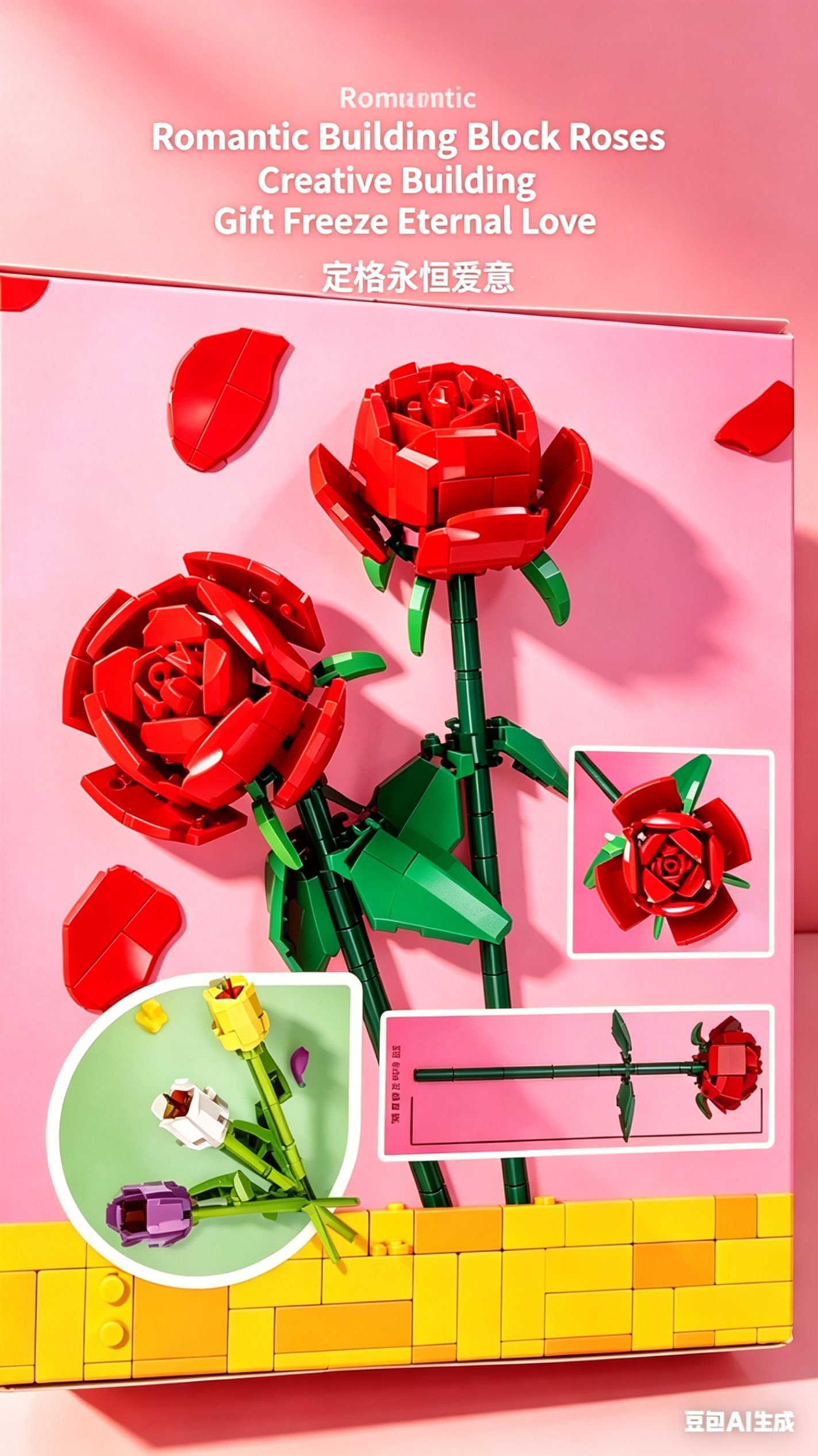 Eternal Romantic Building Block Rose—a unique, hand-assembled decorative piece that blends the charm of real roses with the durability of building blocks. Unlike fresh flowers that wilt, this block rose preserves beauty endlessly, making it the perfect gift for expressing love, friendship, or as a collectible decor for any space.