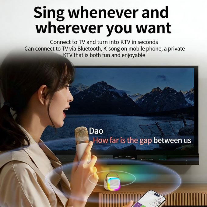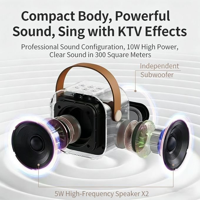 这款蓝牙音箱+无线麦克风卡拉OK套装专为家庭/户外KTV场景设计,其设计和功能也完美契合日常娱乐需求: