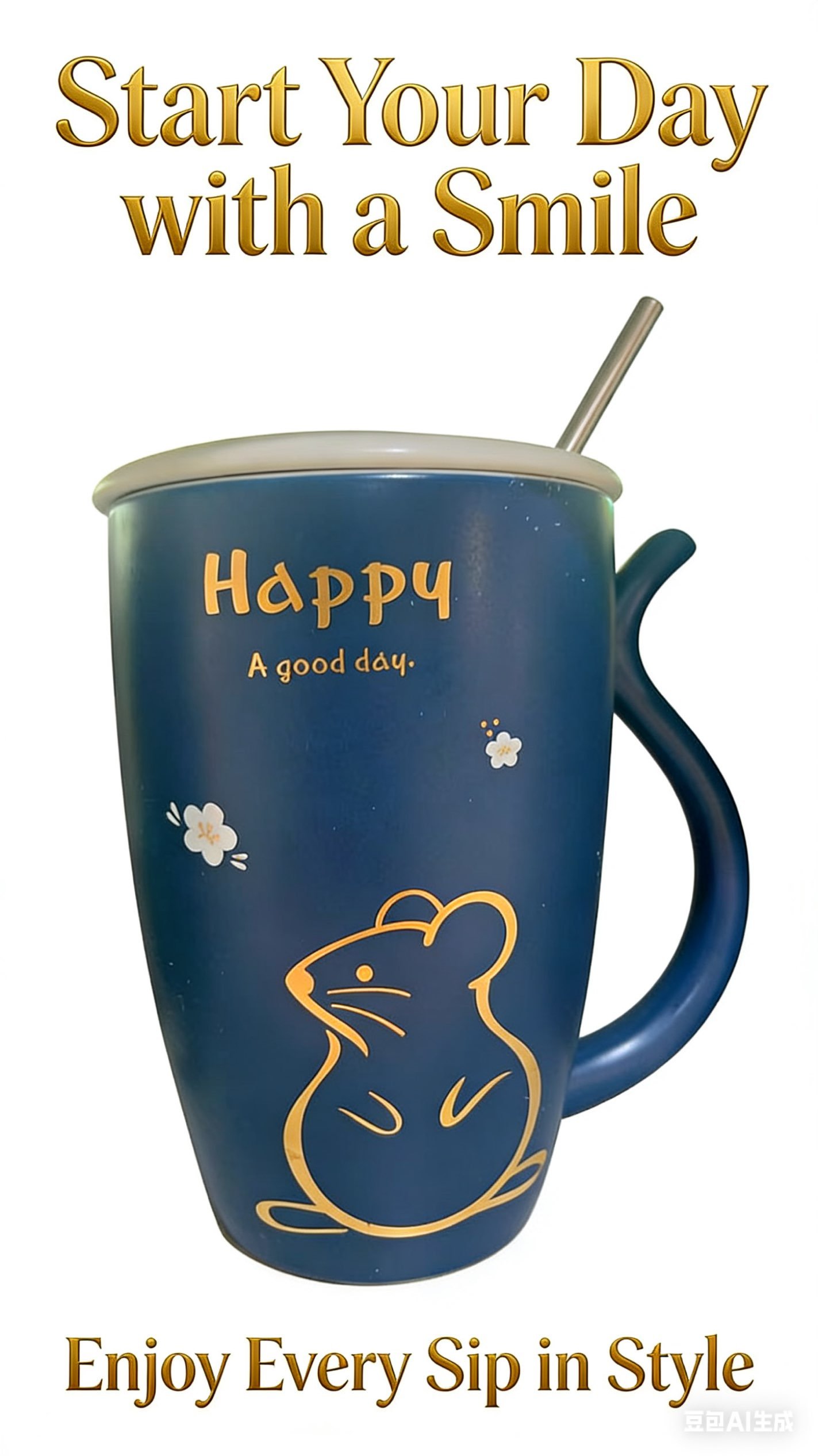 • Navy blue base with gold foil mouse pattern & “Happy A good day” slogan, full of energy & vitality