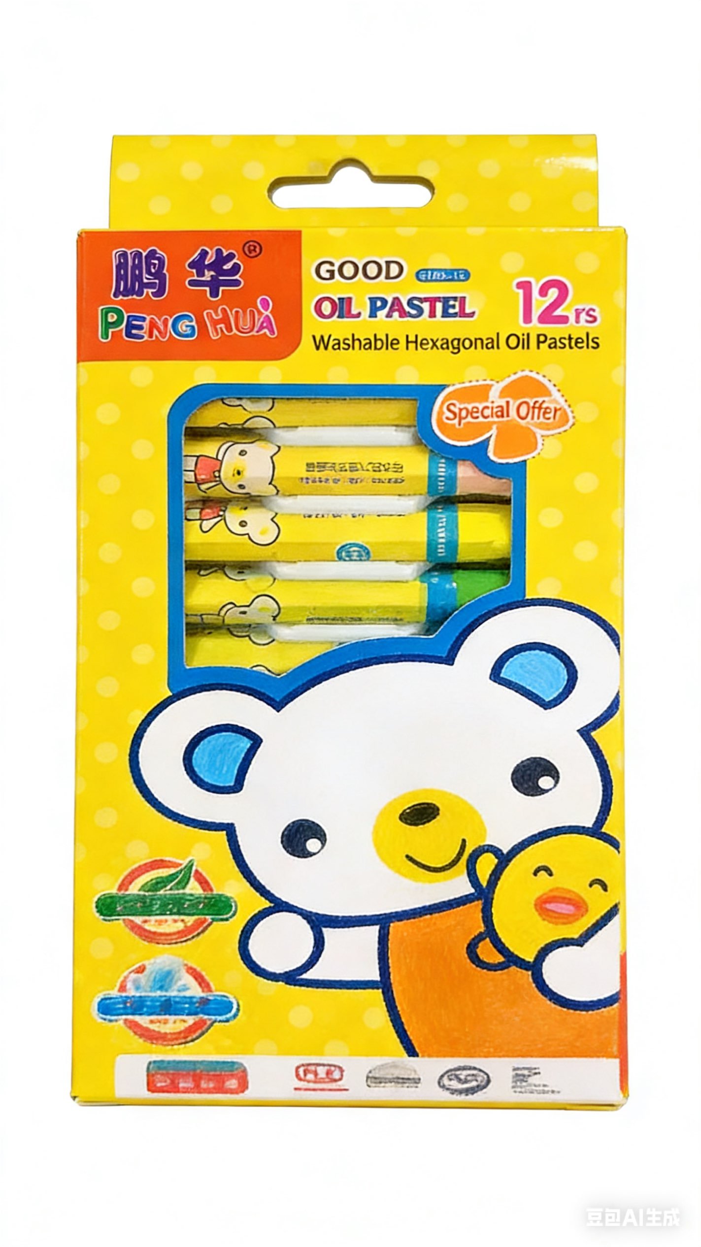 PENG HUA 12-Color Washable Hexagonal Oil Pastels