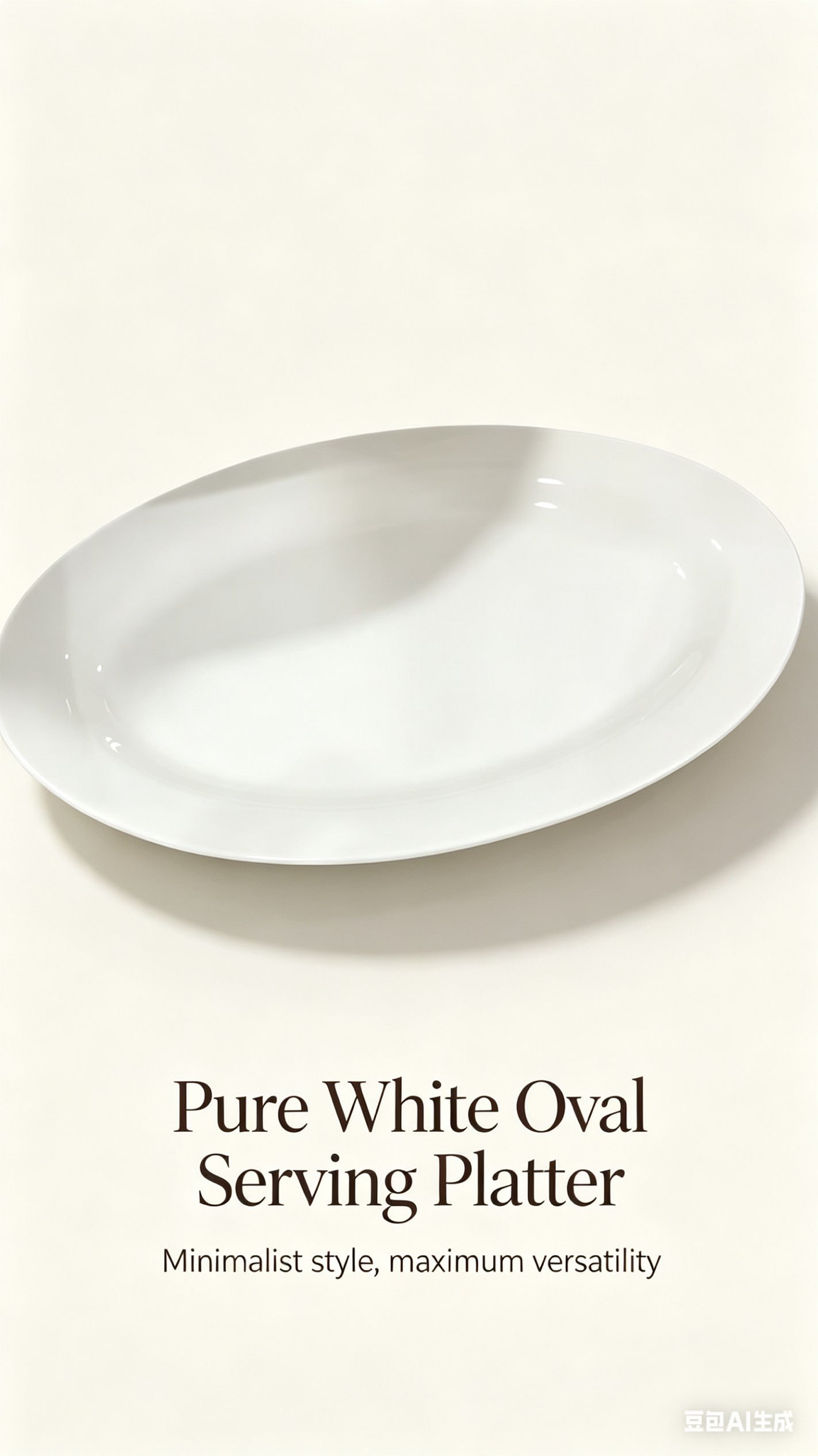 Minimalist pure white oval serving plate, ideal for whole fish, large dishes, or western meals. Made of high-quality white ceramic with a glossy, scratch-resistant glaze. Durable high-fired design resists chipping, perfect for family dinners and gatherings.