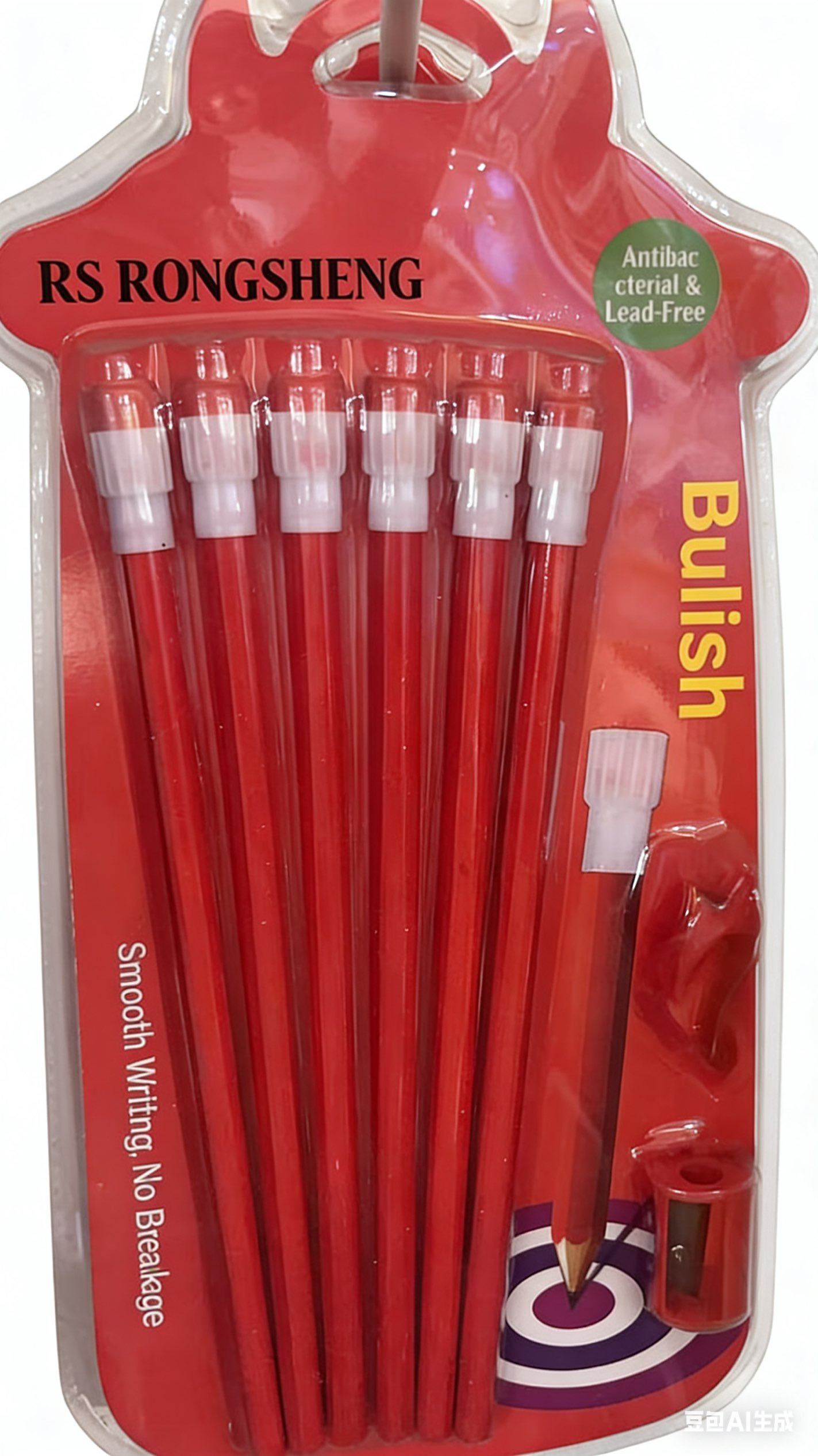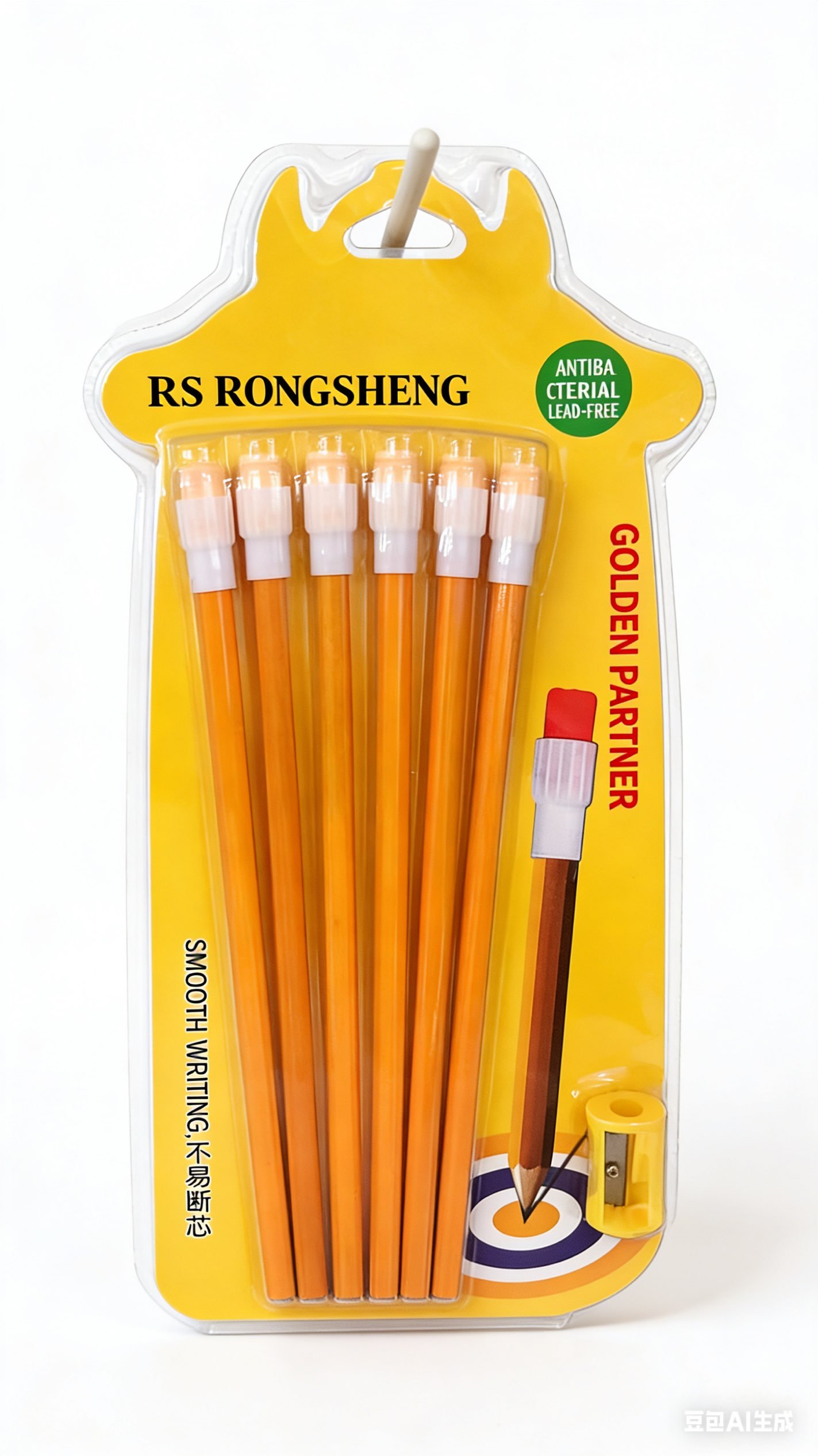 RS Antibacterial HB Pencil Set (Red/Yellow 2 Colors, 6-Pack + Sharpener)