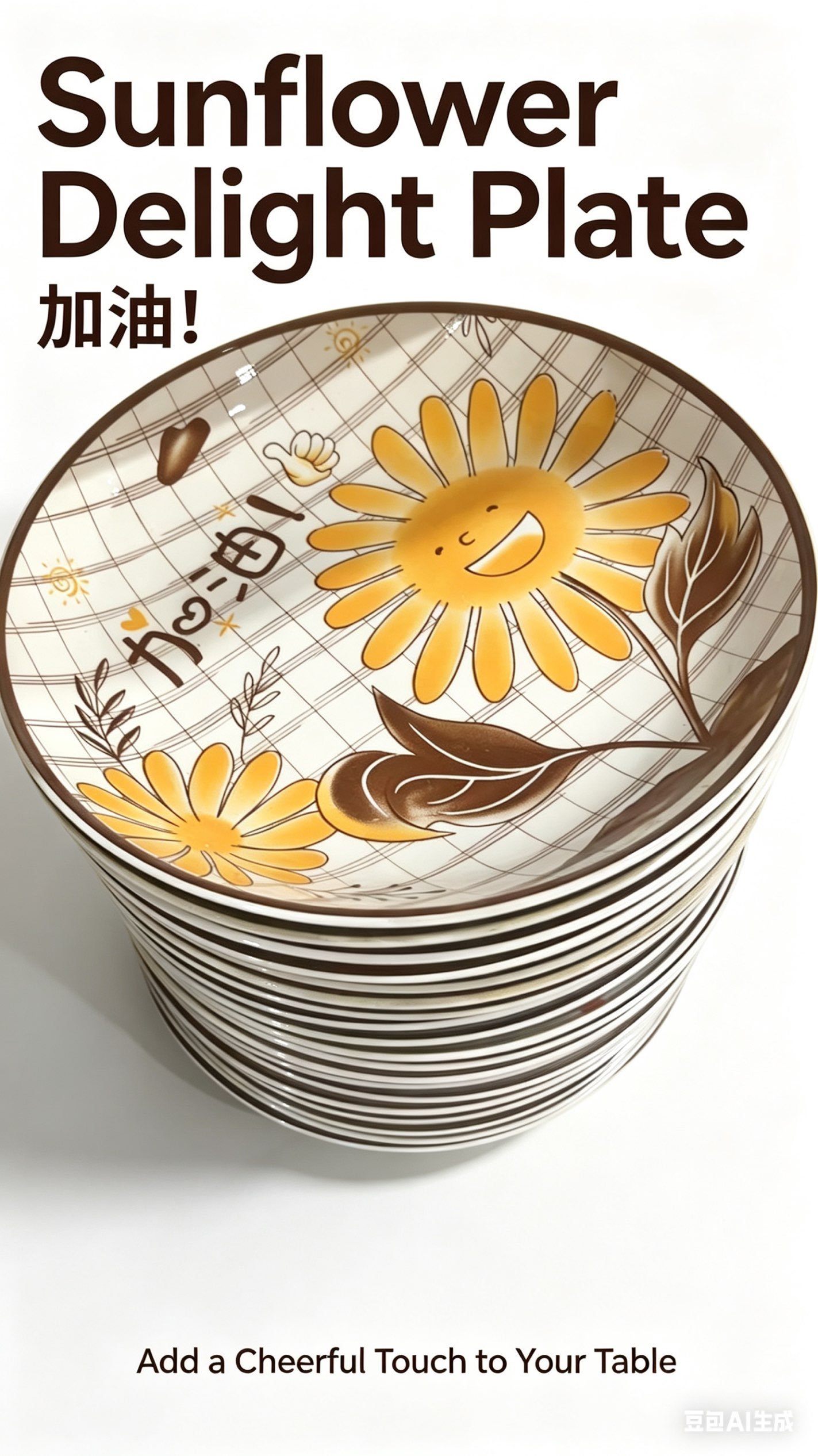 Smiling Sunflower Motivational Plate -19.5cm