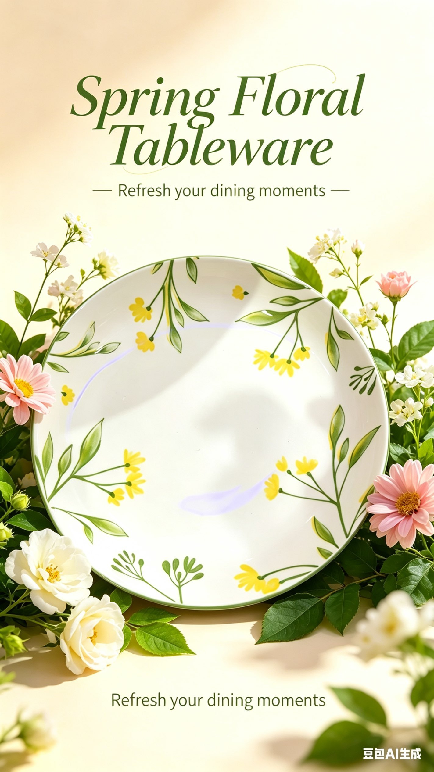 Fresh spring-inspired ceramic plate with hand-painted yellow flowers & green leaves. Bright, gentle colors add a cheerful vibe. Made of high-quality white ceramic, durable and smooth-edged. Ideal for breakfast, afternoon tea, or light meals to brighten your dining moments.