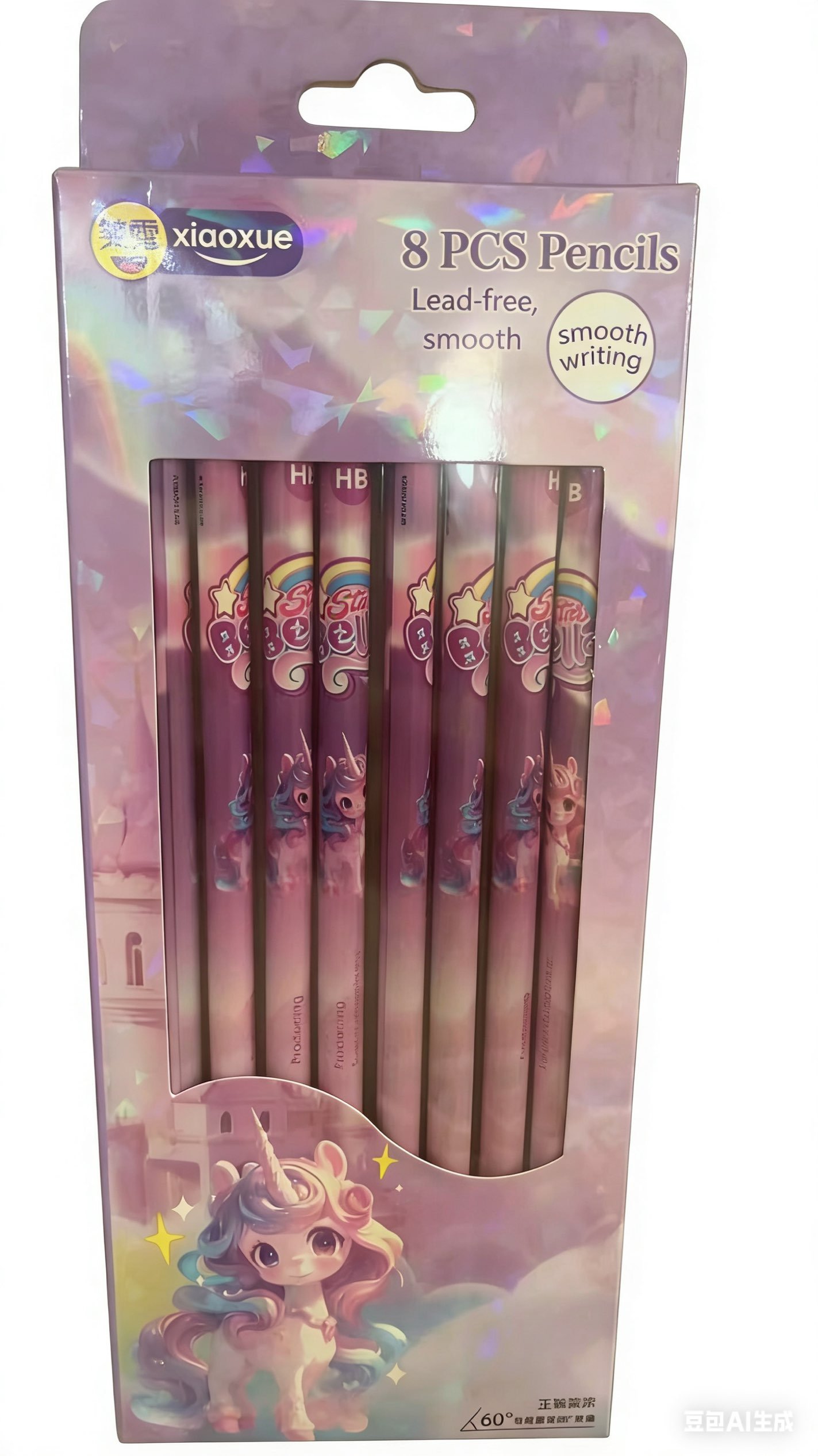 A dreamy writing essential for girls! Crafted with premium HB lead, this set offers smooth, consistent writing with no lead breakage, and is completely lead-free and non-toxic. The pencils feature adorable unicorn and rainbow prints on a soft purple barrel, with a stylish, eye-catching design that girls adore. The hexagonal shape ensures a secure, non-slip grip, ideal for daily writing, homework, and drawing. Packaged in a sturdy box, it keeps pencils clean and organized for easy storage.