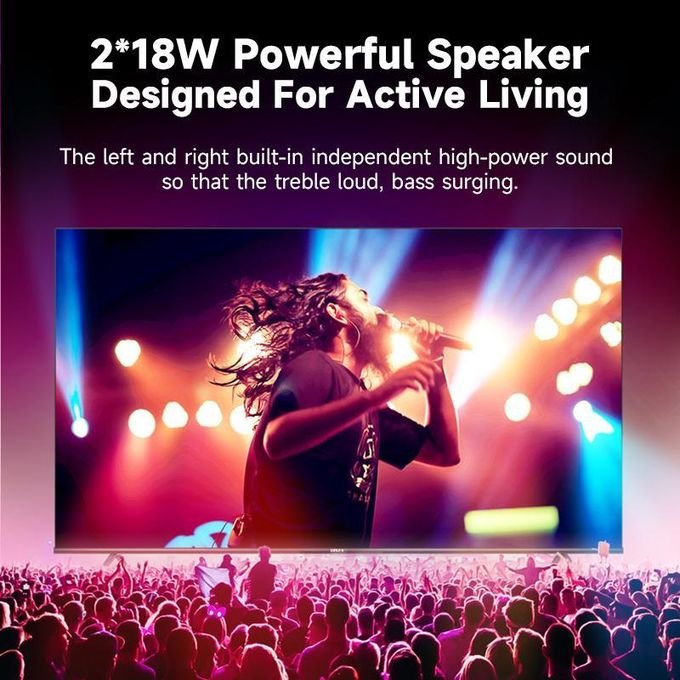 内置 2 个 8W 扬声器,让您享受优质音效带来的高级感受;智能音量功能可自动调节节目音量,消除切换频道或播放电视广告时通常出现的突然声音波动。