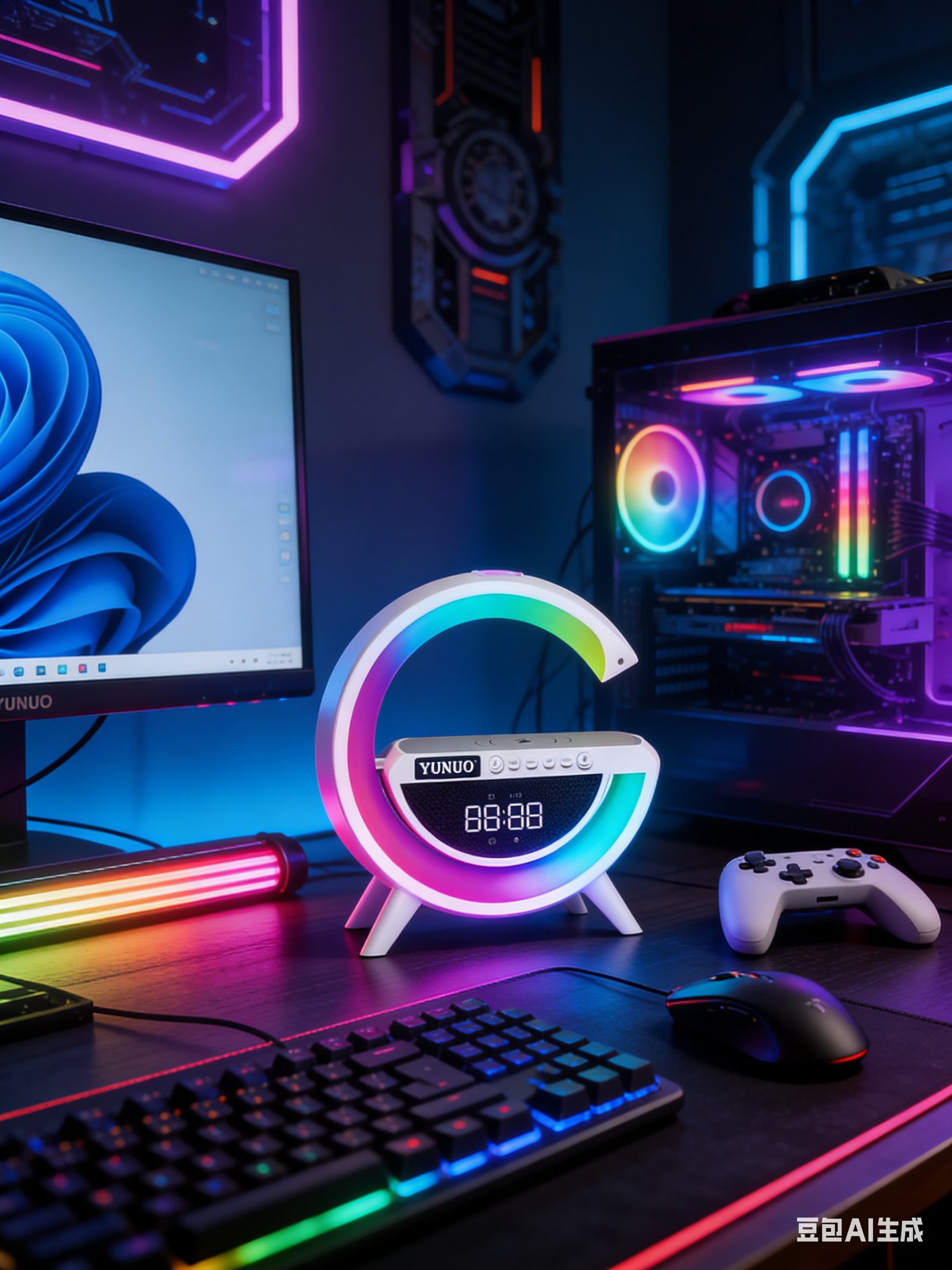 • 办公桌面:无线充电+蓝牙音箱+氛围灯,打造高效、整洁的办公环境